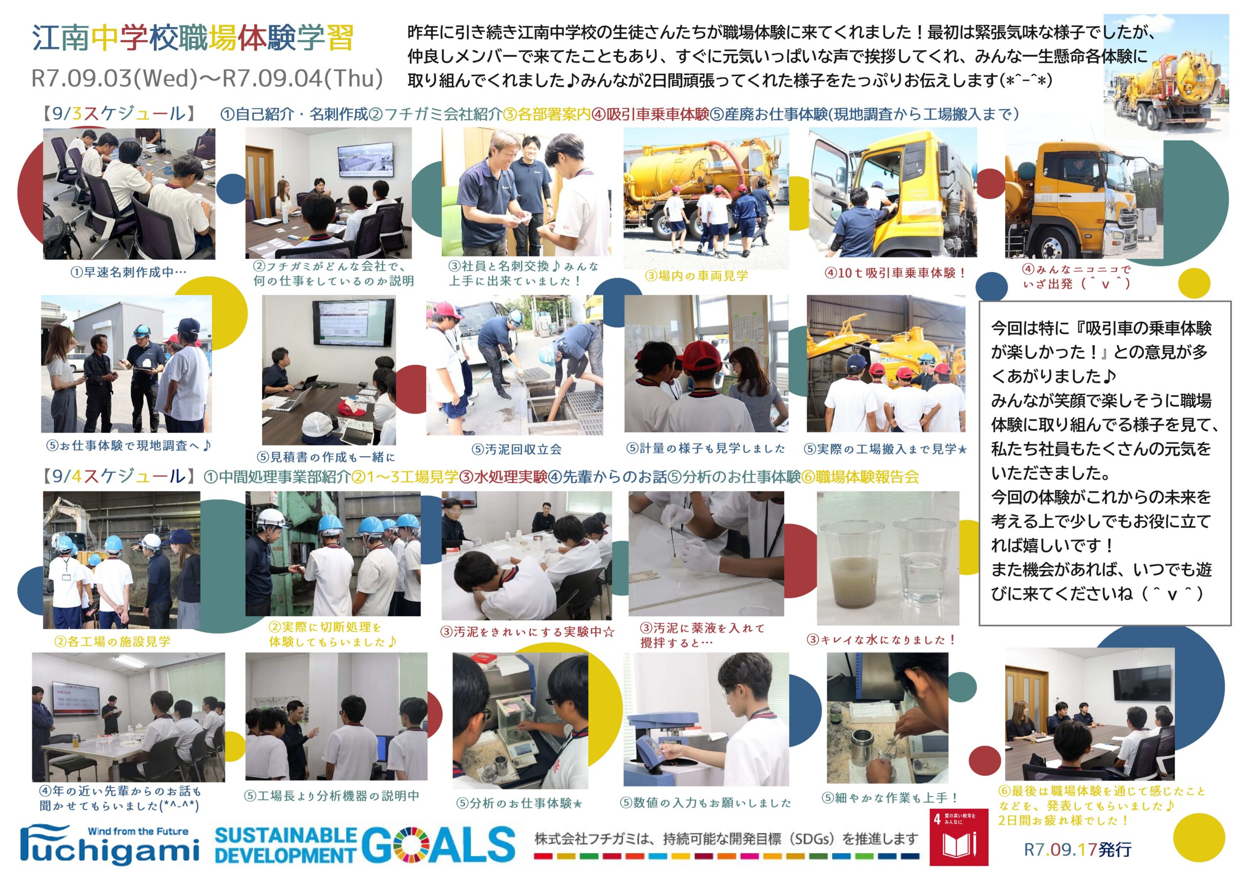 フチガミ社内報のご紹介 -江南中学校職場体験学習-