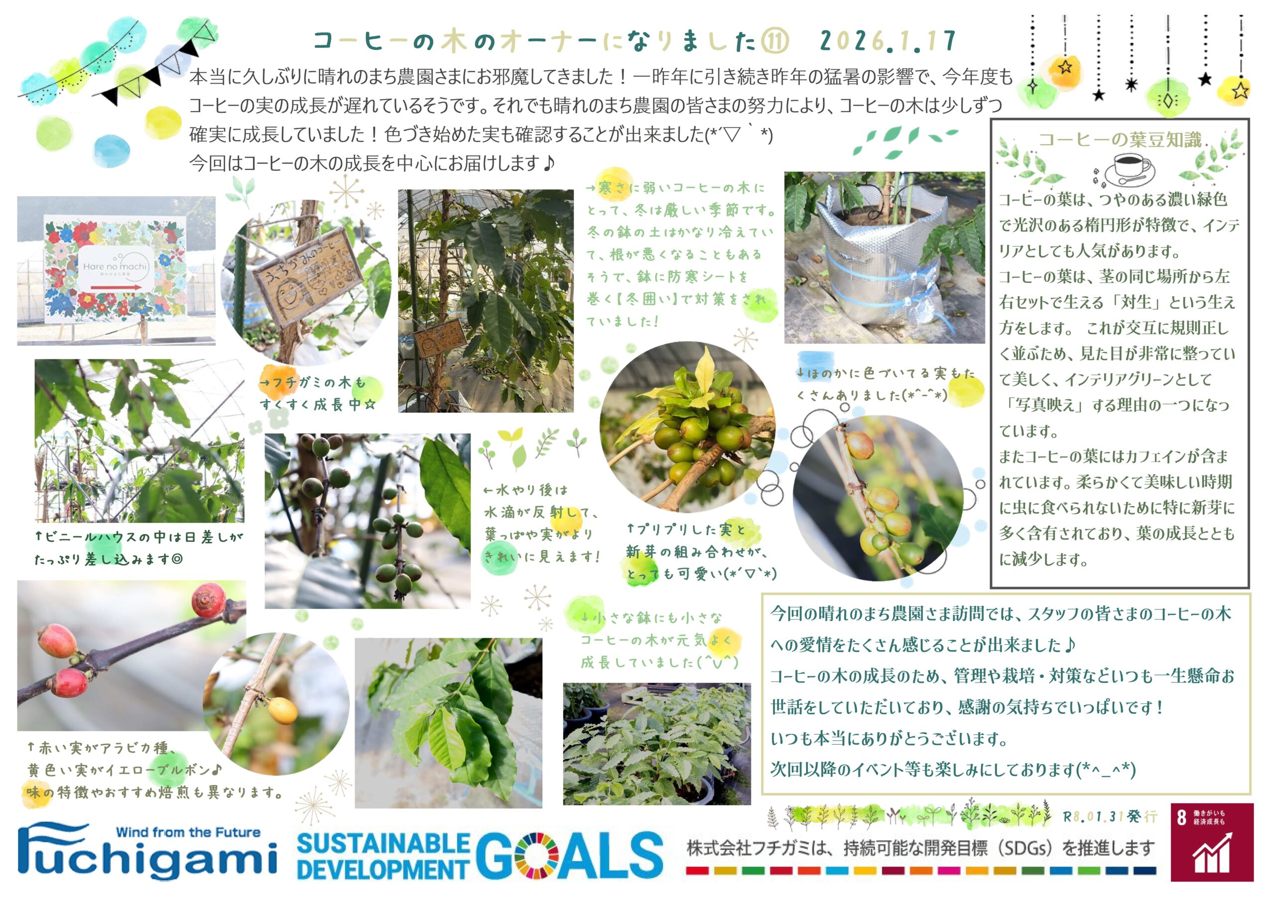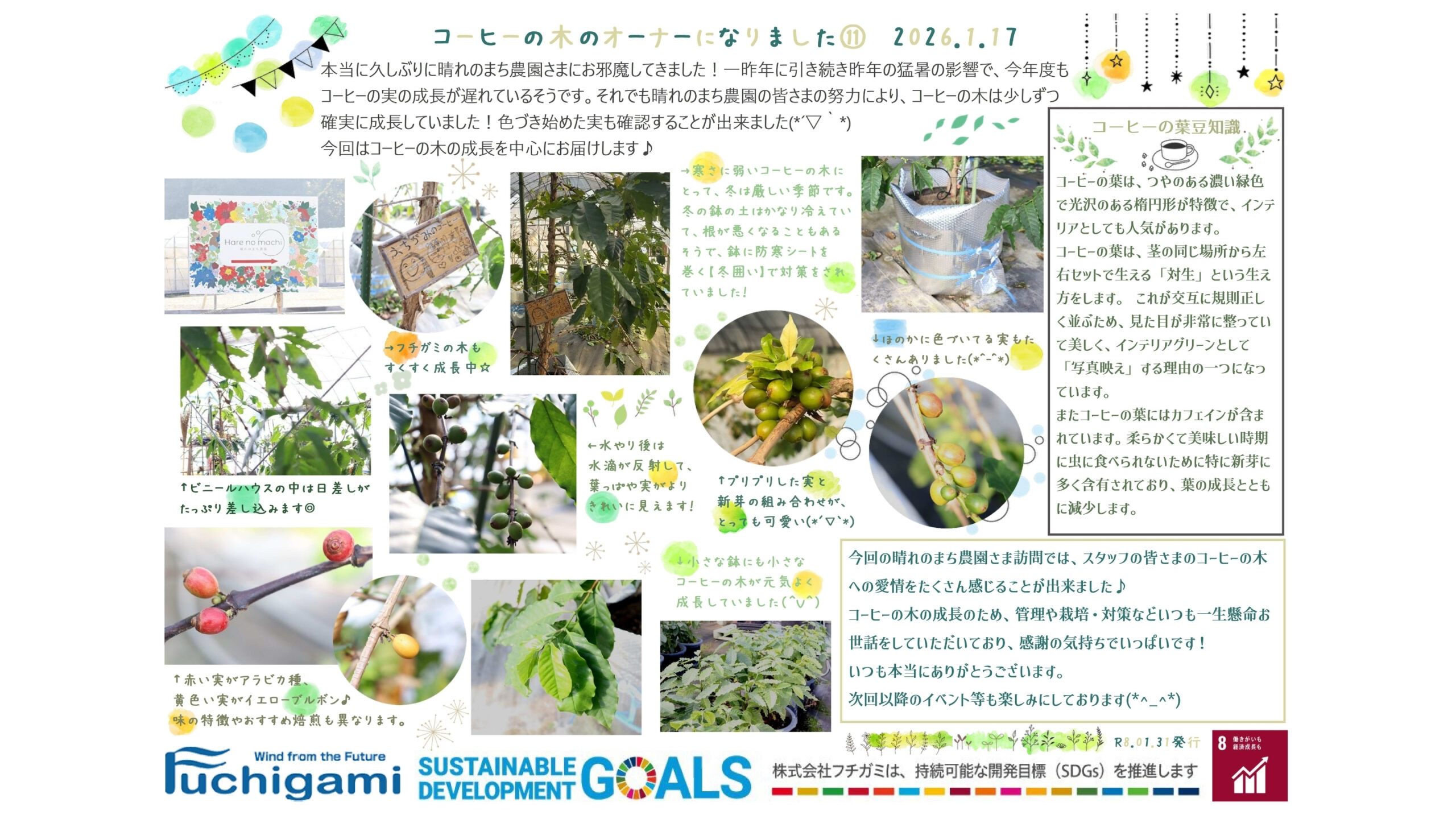当社は、晴れのまち農園様のコーヒー木のオーナー制度に申込み、
